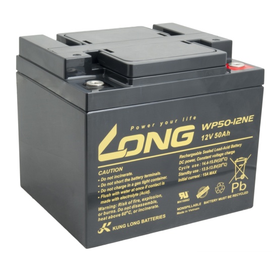 Baterie Long WP50-12NE patří mezi spolehlivé trakční akumulátory určené pro časté cyklické vybíjení a nabíjení s možností hlubokého vybití. Díky AGM technologii je naprosto bezúdržbová – elektrolyt je absorbován ve skleněných vláknech, což zajišťuje bezpečný provoz bez úniku kapalin a s minimálním samovybíjením.