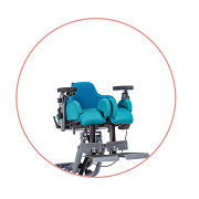 Individuálně nastavitelná sedačka a podpůrné peloty umožňují stabilní a vzpřímenou polohu vsedě. Během relaxačních fází může být židle v horizontální poloze.