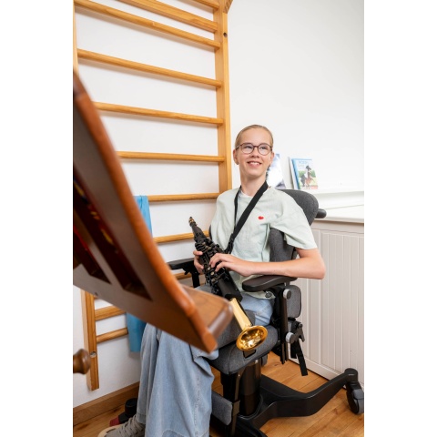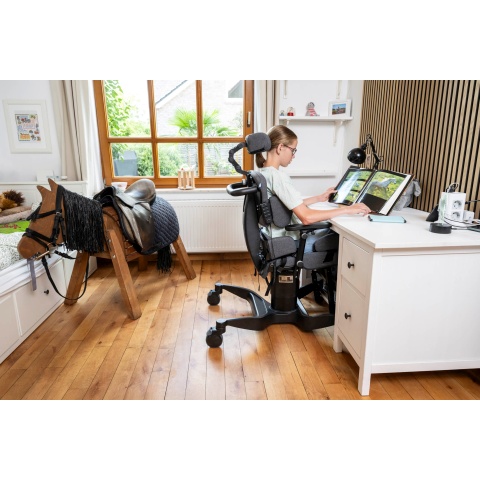 Terapeutická polohovací židle zajišťuje stabilní a bezpečný sed. Posturální stabilita je nutnou podmínkou pro nácvik a rozvoj jemné motoriky. Volitelné nastavení úhlu sedu, zádové opěry a fixace pánve umožňuje snadnou změnu polohy a napomáhá snížení svalového napětí.