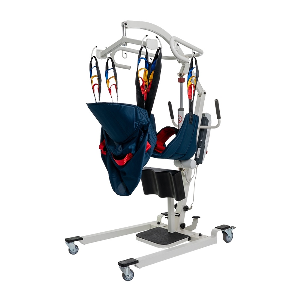 - Multifunkční využití – jeden zvedák pro zvedání, přemísťování i asistovanou vertikalizaci - umožňuje plynulý přechod z polohy vsedě do stoje, čímž podporuje aktivní zapojení pacienta